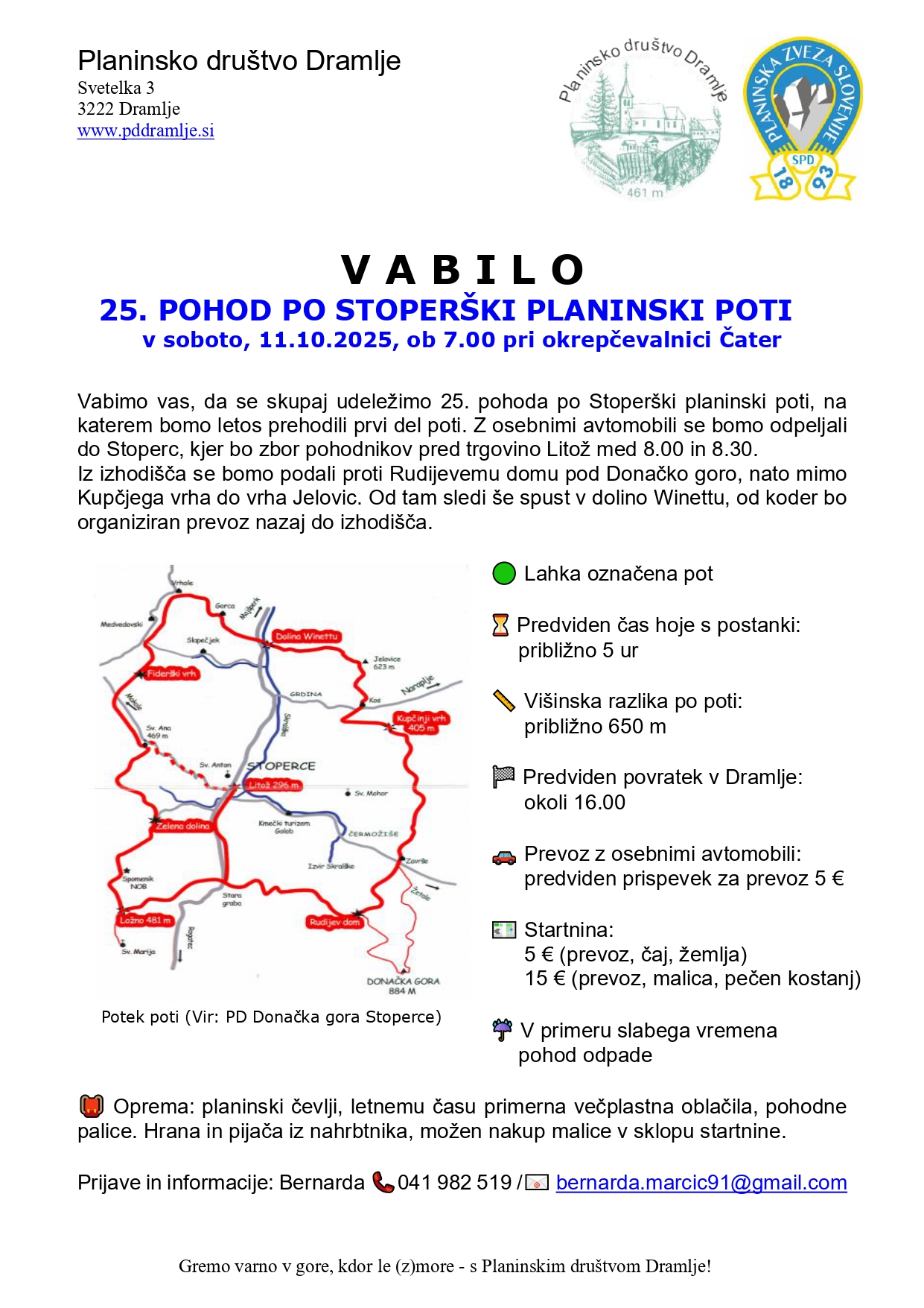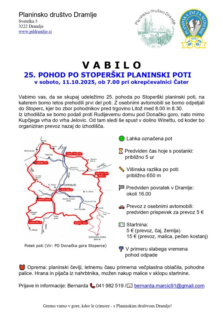 Vse ostalo je razvidno iz vabila , katerega je lepo pripravila Bernarda Marčič, ki sprejema prijave in vodi izlet.
