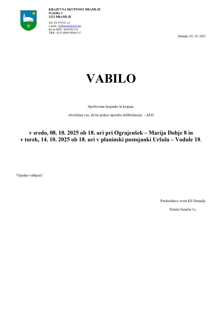 Vabim vas, da se udeležite, saj v takšnih situacijah šteje vsaka sekunda in minuta.